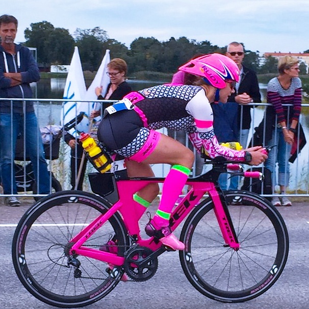 Jag blir härligt bubblig av alla kommentarer som når mig från triathleter som cyklar förbi. Grymt snygg hoj är det jag får höra och fan du har den snyggaste matchningen på banan. Rosa kärleken och jag ler och vi njuter av att få vara tillsammans. Härlig energi längs med banan. Alltså jag bara älskar det här! :)